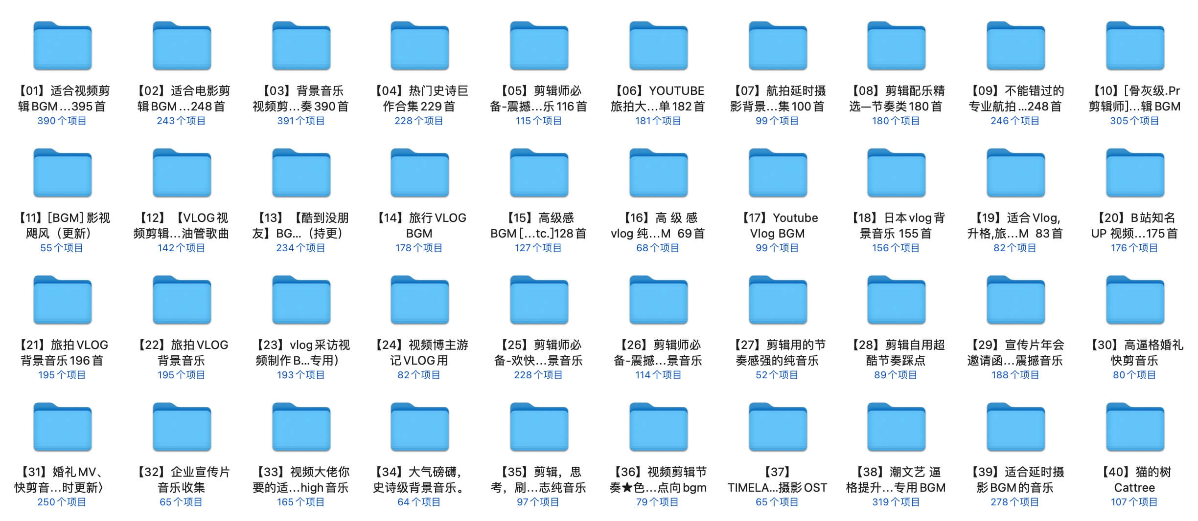 BGM合集音乐包,基本涵盖了各个领域bgm背景音乐,全部已经整理好了,不管你是做视频后期还是自媒体直播、影视后期专业人士,我想这套BGM音乐合集包你一定会有用到的!