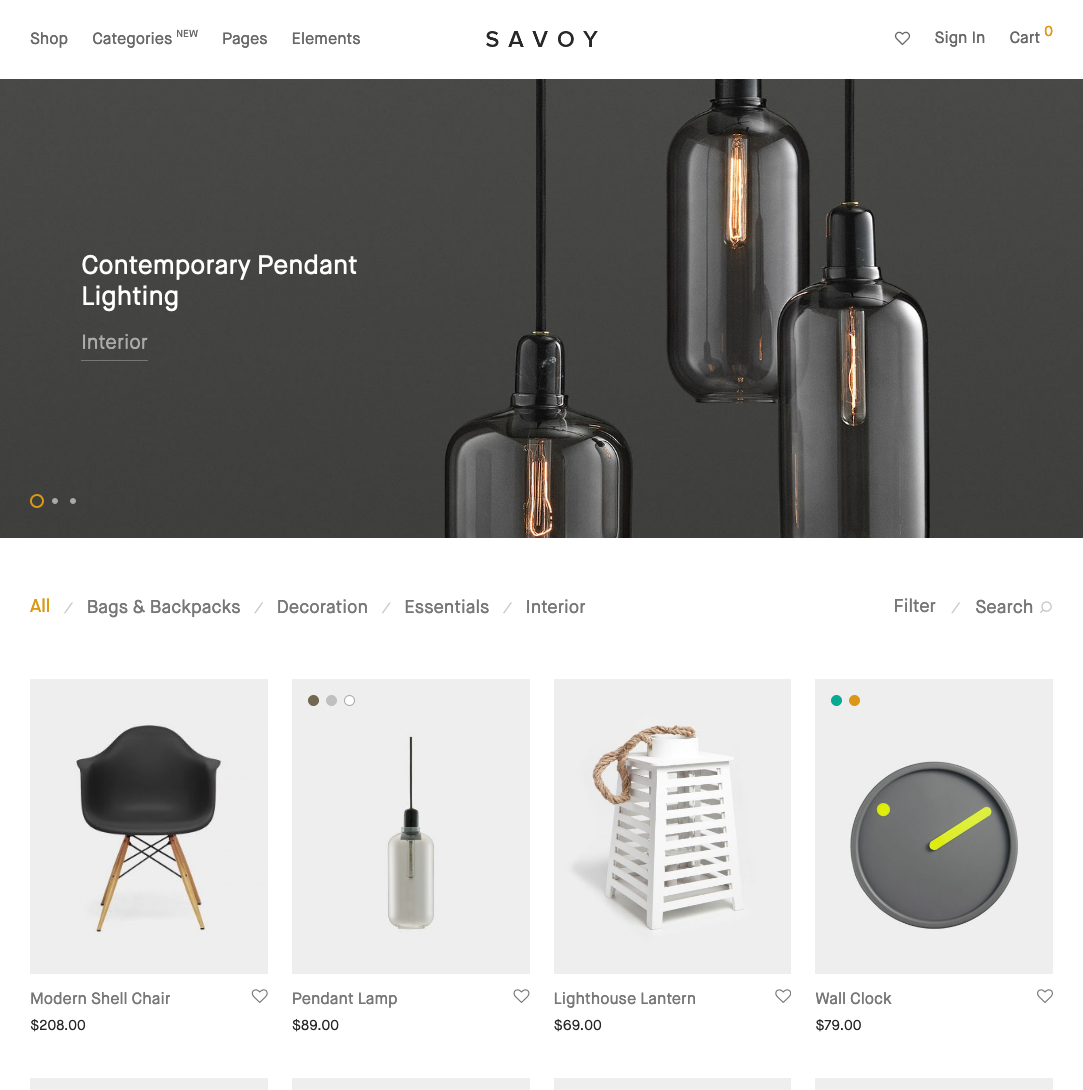 Savoy主题是一个设计简约,性能优秀的WooCommerce电子商务主题。该主题的设计思想是以产品为中心,注重性能和用户体验,舍弃了花哨的功能。内置了可以提高用户体验的Ajax产品筛选。可为客户提供桌面和移动设备上的无缝用户体验。