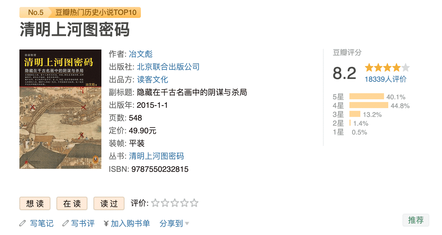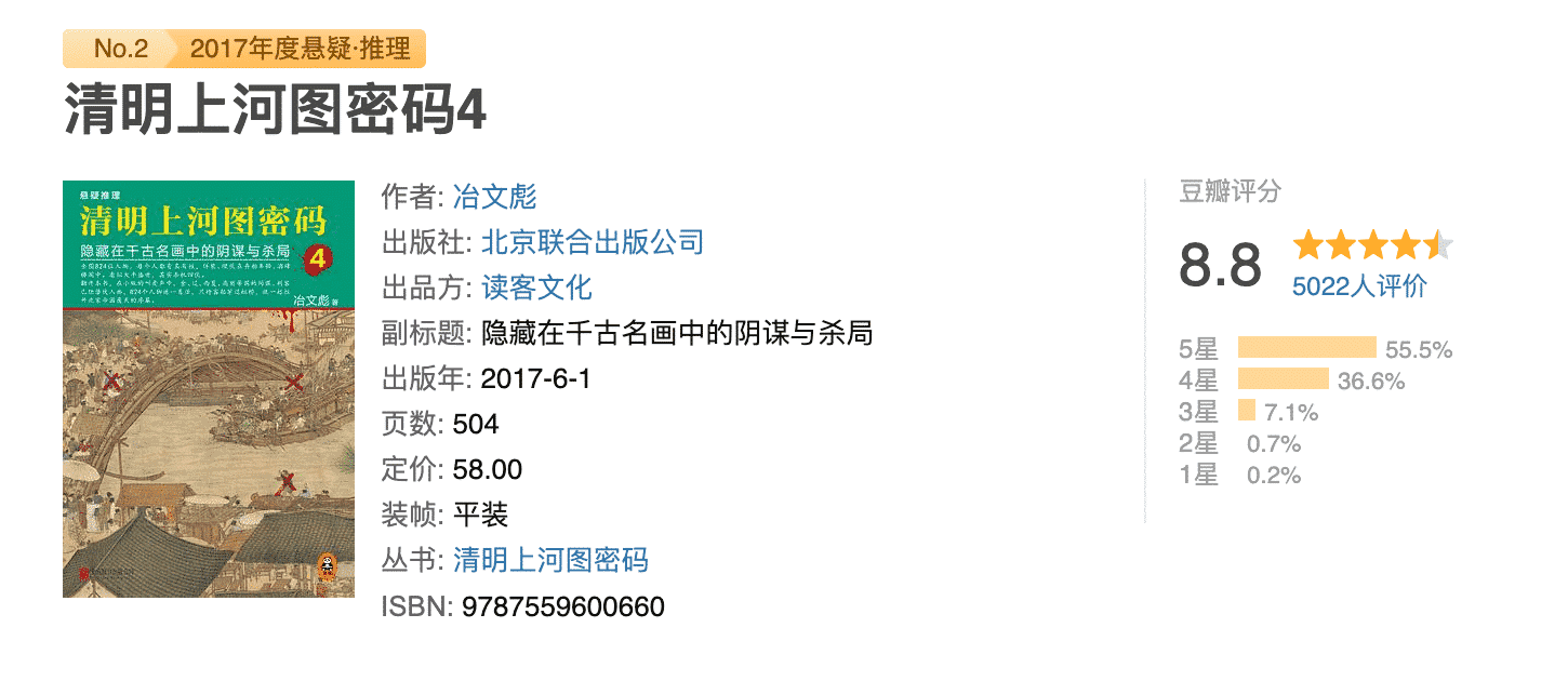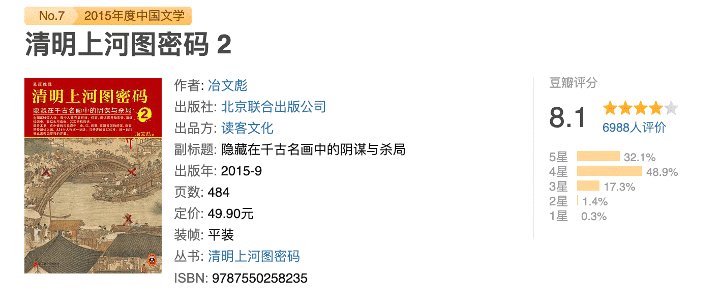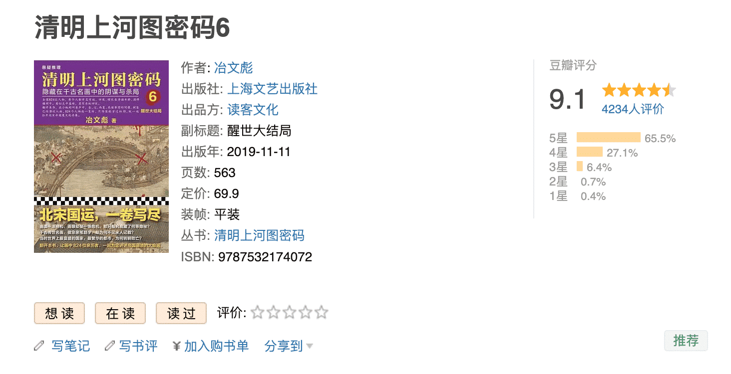 《清明上河图密码》是由冶文彪所著的一系列历史推理小说,共有六册。这套书以《清明上河图》为背景,通过复活画中的824个人物,讲述了北宋时期的一个个复杂案件和背后的秘密。书中不仅描绘了北宋的繁荣景象,还揭示了当时的政治和社会状况。