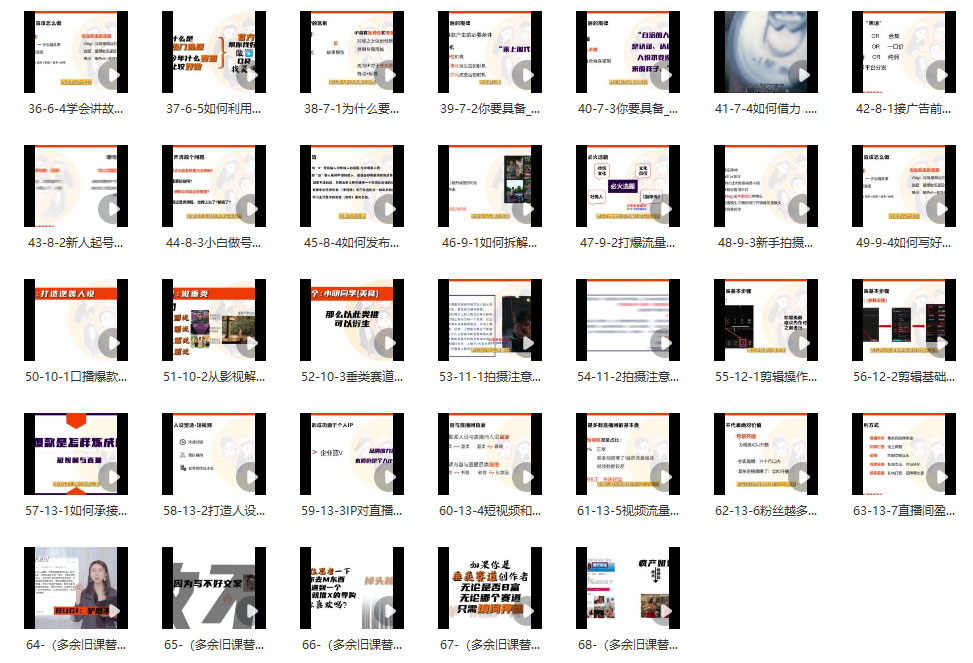 “短视频个人IP起号方法68节课”是一门全面的课程,旨在教授如何在短视频平台上打造个人IP。这门课程覆盖了从基础到高级的多个方面,包括人设定位、网感培养、落地实操等,共计68节课程。