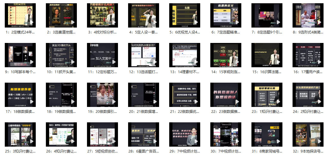 此外,课程还包括了如何提升完播率、点赞率、评论率、收藏率和转发率等关键技能。通过这些模块的学习,学员将能够全面掌握短视频创业的各个环节,提升创业成功率,并实现快速变现