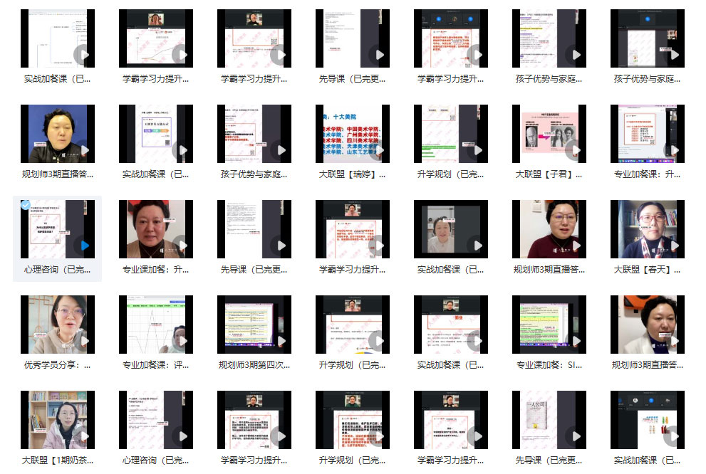 课程内容丰富多样,包括各种实际案例和策略分享,例如教育政策解读、升学策略制定、心理辅导技巧等。此外,课程还包括了一些实战加餐课和先导课,旨在提供更深入的指导和帮助学员更好地理解课程内容。