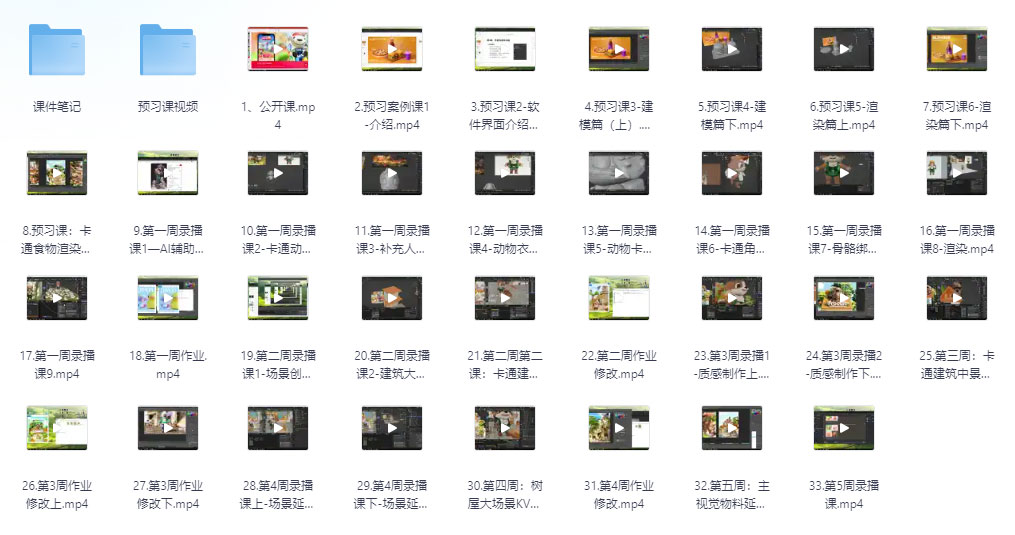 课程分为五个阶段,每个阶段都包含多个录播课程和相应的实践案例。这些案例包括卡通动物建模、卡通建筑场景设计等,旨在帮助学员快速上手并完成高质量的作品。此外,课程还提供了作业修改指导,确保每位学员都能得到个性化的反馈,不断优化自己的设计和技术水平。