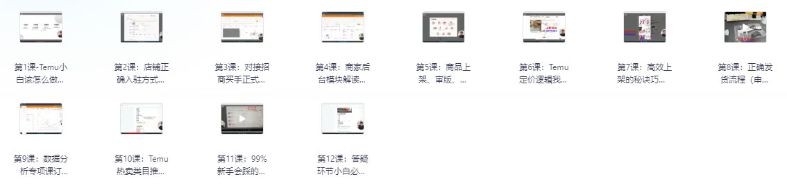 此外,课程还提供了关于Temu平台的运营模式、后台工具总览、产品发布、上新生命周期管理、包装发货、样品管理、首单和备货、打包发货、店铺诊断和维护等方面的内容。