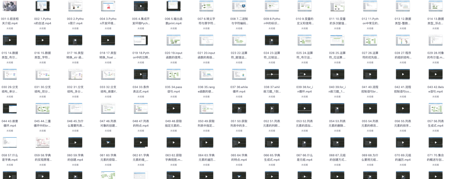 Python基础:涵盖Python的基本语法、数据类型、运算符、流程控制语句等,适合零基础学员。